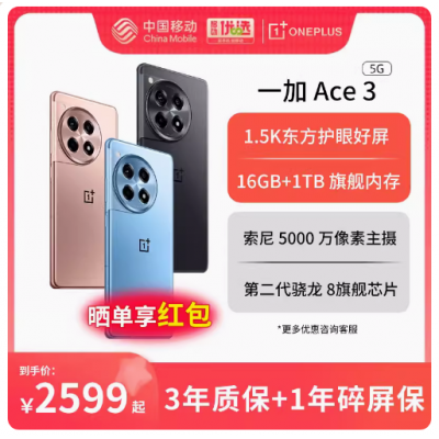 【移动用户专享】OPPO一加 Ace 3 新品上市全能王牌5G全网通手机官方旗舰官方正品一+1+1加手机一加ace3