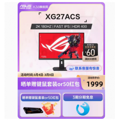 首页 > 显示器 > ROG XG27ACS绝杀27青春版 显示器电竞180Hz 27英寸2k显示屏幕电脑